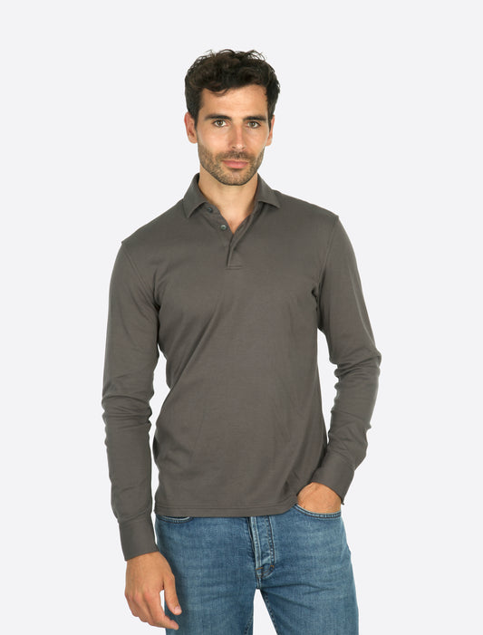 Theo Jersey Cotton Long Sleeve Polo Dark Grey