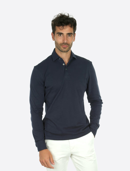 Theo Jersey Cotton Long Sleeve Polo Navy