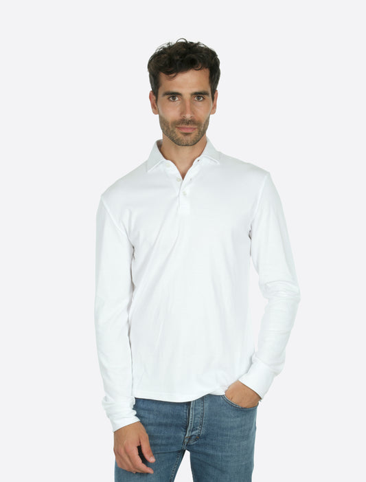 Theo Jersey Cotton Long Sleeve Polo White